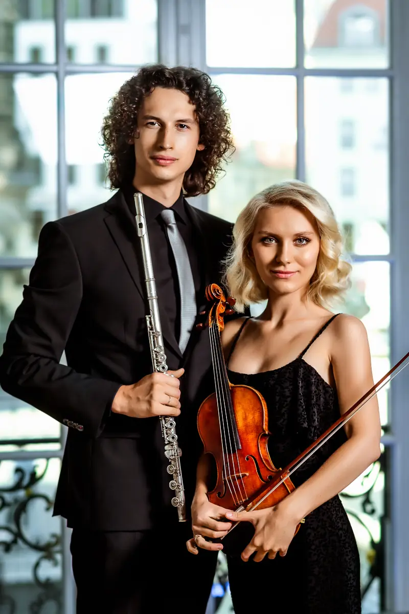 Der Flötist und Dirigent Alexander Sidoruk komplettiert das Duo mit seinem charakteristischen, weichen Klang. Er absolvierte das Ural State Conservatory sowie die Hochschule für Musik in Dresden. Neben seiner Tätigkeit als Solist ist er als Dirigent in ganz Europa aktiv. Er teilte die Bühne bereits mit Weltstars wie Dmitry Hvorostovsky und Emmanuelle Pahud. Diese tiefgreifende Erfahrung ermöglicht es ihm, jedes Arrangement mit einer besonderen Raffinesse zu interpretieren.
